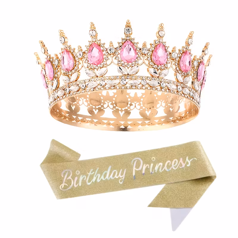 Set of 2pcs Including a Rhinestone Crown And a Golden Tiara with Sash – Dazzling Party Gear for Women